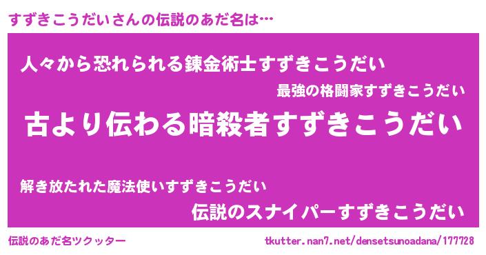 | 意味不明あだ名 | 『永久保存すずきこうだい』 |