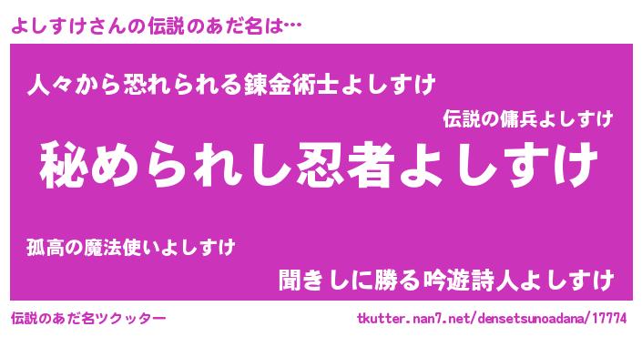 | ファンタジー風あだ名 | 『エターナルヨシスケー』『クインヨット』 |