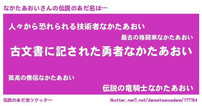 | 男性向けラノベタイトル風あだ名 | 『この素晴らしい世界になかたあおいを!』 |