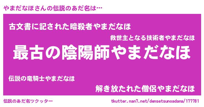 | ファンタジー風あだ名 | 『エターナルヤマダナホー』『ゼヤマトゥ』 |