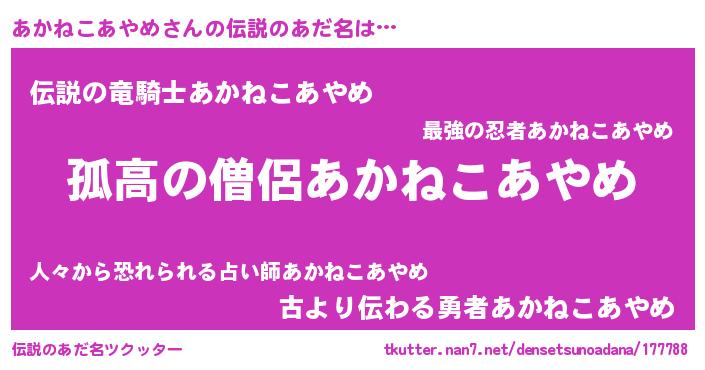 | 意味不明あだ名 | 『自称あかねこあやめ』 |
