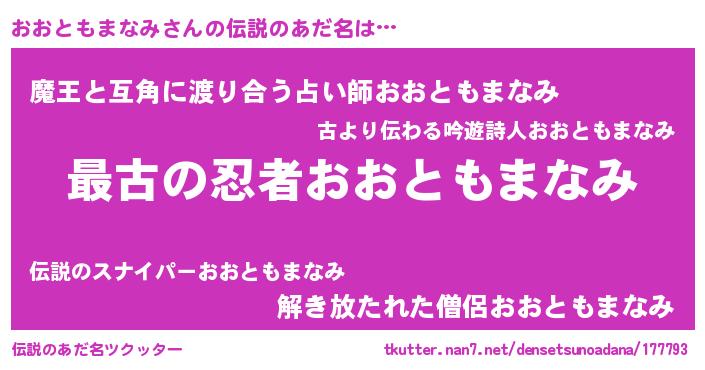 | 意味不明あだ名 | 『おおともまなみフォーエバー』 |