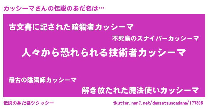 | 意味不明あだ名 | 『自称カッシーマ』『永久保存カッシーマ』 |