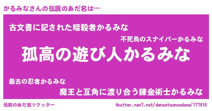 | 意味不明あだ名 | 『とにかく怪しいかるみな』 |