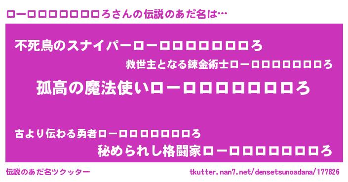 | 胡散臭い通販商品みたいなあだ名 | 『信頼と実績のサプリメント…その名も「ローロロロロロロロろ」』 |