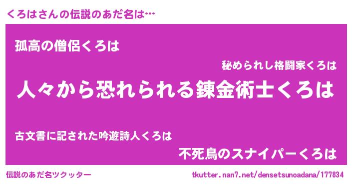 | 女子向けラノベタイトル風あだ名 | 『くろはが死なない童話 林檎のくろはの診療簿』 |