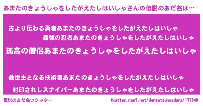 | 胡散臭い通販商品みたいなあだ名 | 『信頼と実績のネックレス…その名も「あまたのきょうしゃをしたがえたしはいしゃ」』 |