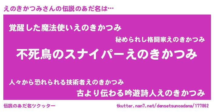 | ヒーロー風カッコイイあだ名 | 『スーパーエノキカツミ』『魔戒騎士エノ』 |