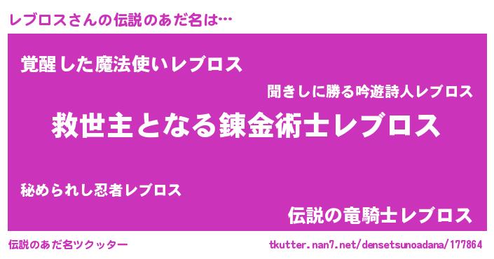 | ヒーロー風カッコイイあだ名 | 『天空の使者レブロス』『炎刃騎士レブ』 |