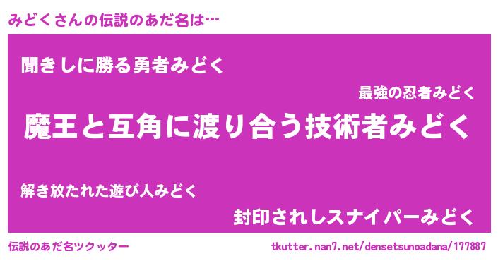 | ヒーロー風カッコイイあだ名 | 『愛の使者みどく』『ネオミドク』 |