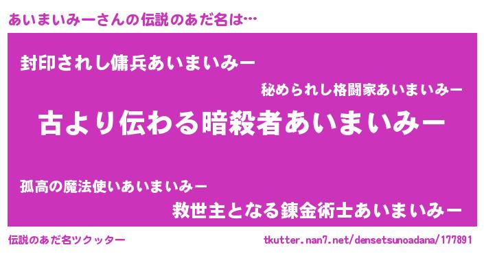 | 胡散臭い通販商品みたいなあだ名 | 『来世でも幸せになれる健康食品…その名も「あいまいみー」』 |