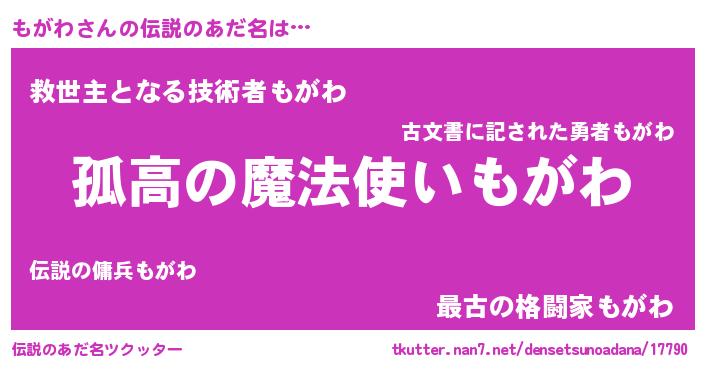 | 意味不明あだ名 | 『とにかく怪しいもがわ』『自称もがわ』 |