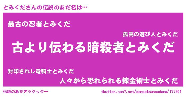 | 女子向けラノベタイトル風あだ名 | 『闇のとみくだ』『とみくだの雑貨屋さん』 |