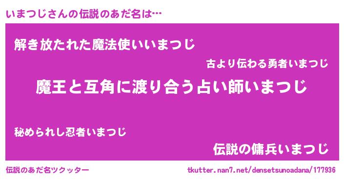 | 意味不明あだ名 | 『住所不定無職いまつじ(53歳)』 |