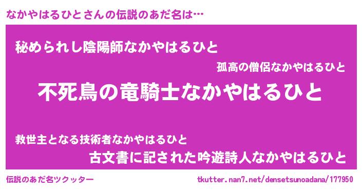 | 意味不明あだ名 | 『自称なかやはるひと』 |