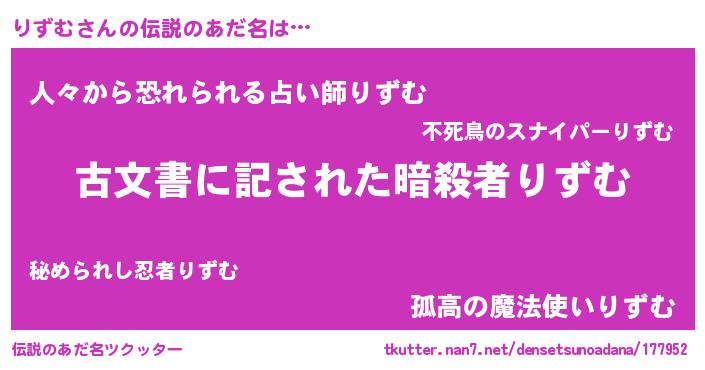 | ファンタジー風あだ名 | 『リズディッシュ』『ヴァルリズーナ』 |