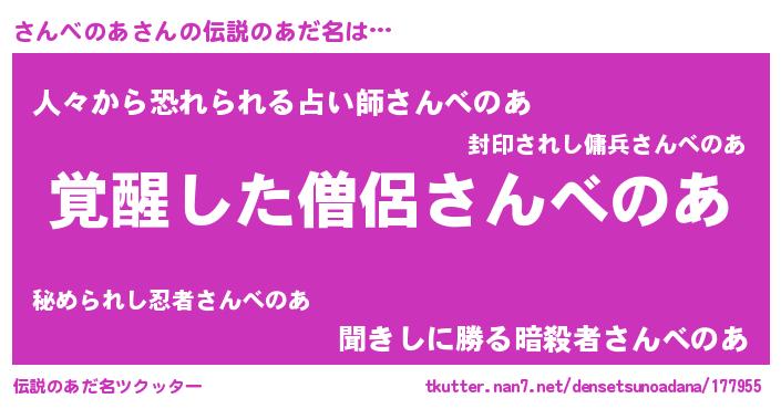 | ヘコむあだ名 | 『さん太郎』『さんべのあ(笑)』 |