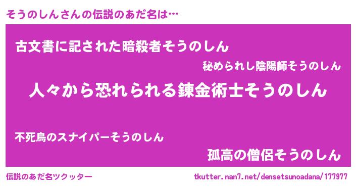 | ヘコむあだ名 | 『そうのしん(遠い目)』『そう太郎』 |
