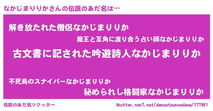 | 意味不明あだ名 | 『永久保存なかじまりりか』 |