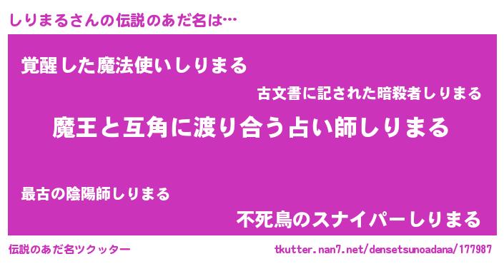 | ヒーロー風カッコイイあだ名 | 『愛の使者しりまる』『仮面シリダー』 |