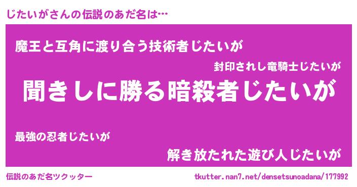 | ヘコむあだ名 | 『じたいが(苦笑)』『じた太郎』 |