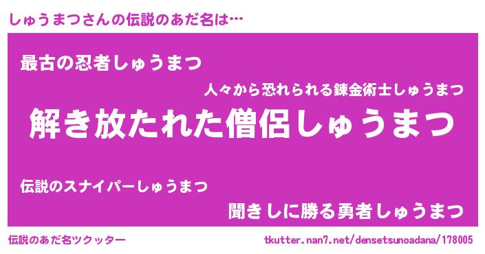 | ポケモン風あだ名 | 『ヒシュウマツ』『シュウダネ』 |