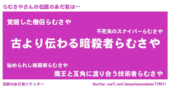 | 意味不明あだ名 | 『永久保存らむさや』『自称らむさや』 |