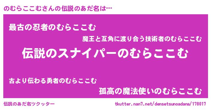 | 胡散臭い通販商品みたいなあだ名 | 『必ず成功する霊験あらたかなお札…その名も「のむらここむ」』 |