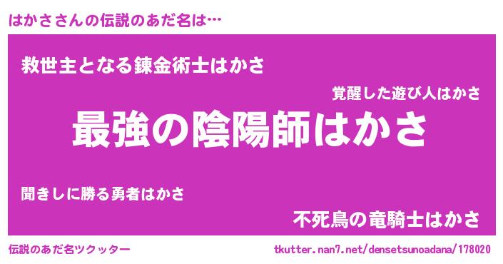 | ポケモン風あだ名 | 『ハカサダネ』『ハックウザ』 |