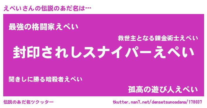 | ヒーロー風カッコイイあだ名 | 『スーパーエペイ』『ウルトラえぺいマン』 |