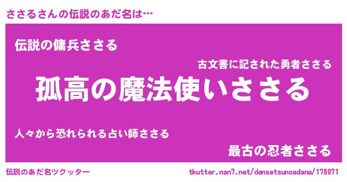 | 意味不明あだ名 | 『自称ささる』『とにかく怪しいささる』 |
