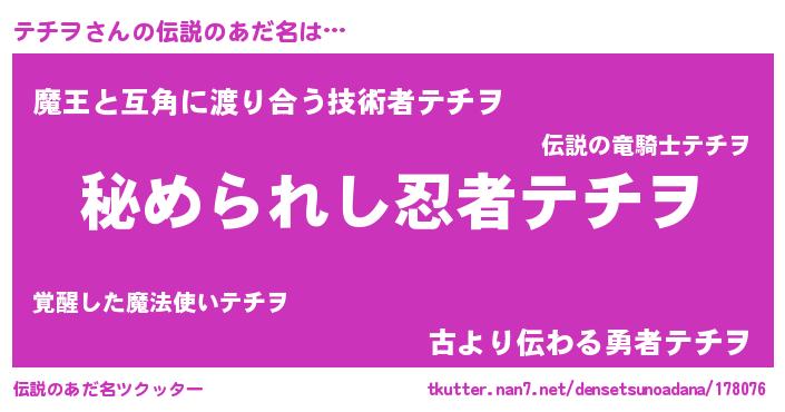 | ヒーロー風カッコイイあだ名 | 『ウルトラテチヲマン』『仮面テチダー』 |