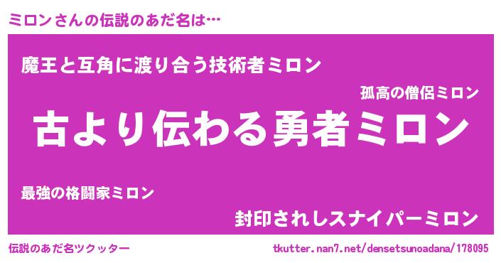 | ヒーロー風カッコイイあだ名 | 『最強戦士ミロン』『仮面ミロダー』 |