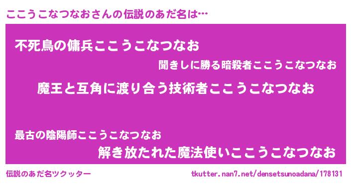 | ヒーロー風カッコイイあだ名 | 『愛の使者ここうこなつなお』 |