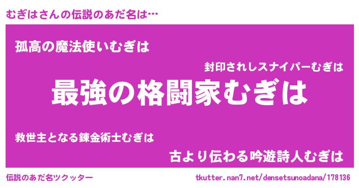 | ファンタジー風あだ名 | 『エターナルムギハー』『ゼムギトゥ』 |