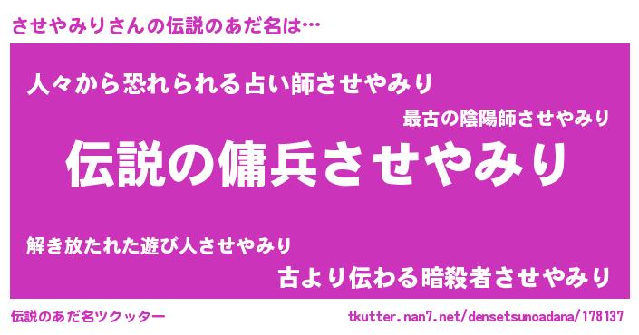 | 胡散臭い通販商品みたいなあだ名 | 『必ず成功する水晶球…その名も「させやみり」』 |