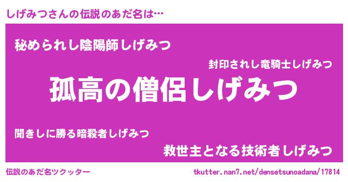 | 女子向けラノベタイトル風あだ名 | 『しげみつは平凡を望む』 |
