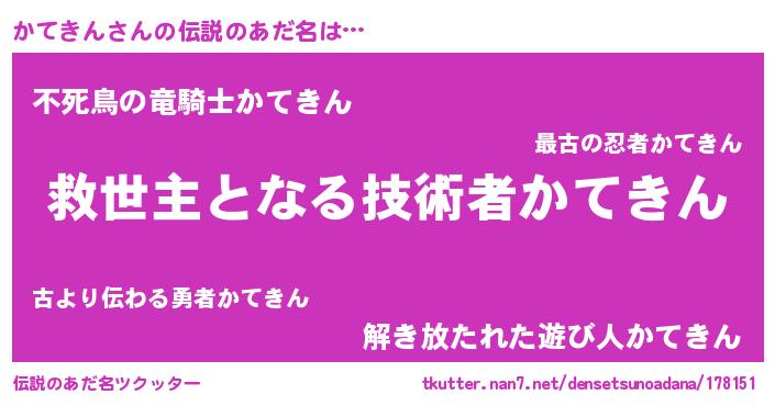 | ヒーロー風カッコイイあだ名 | 『慈愛の使者かてきん』『銀牙騎士カテ』 |