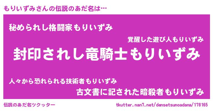 | ヒーロー風カッコイイあだ名 | 『スーパーモリイズミ』『仮面モリダー』 |
