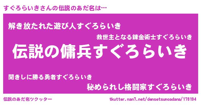 | 意味不明あだ名 | 『住所不定無職すぐろらいき(62歳)』 |