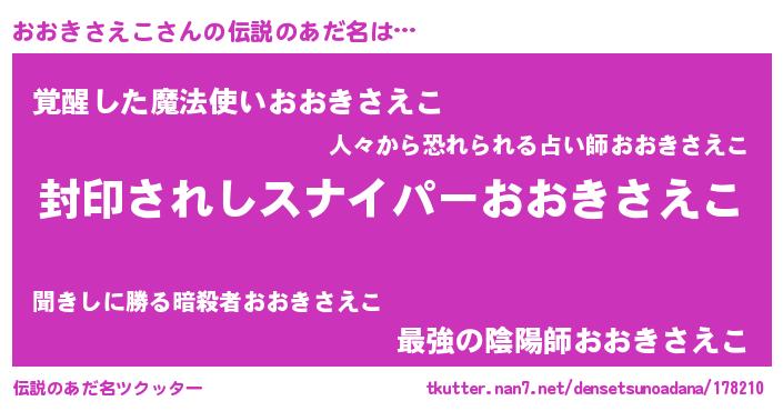 | 意味不明あだ名 | 『住所不定無職おおきさえこ(74歳)』 |