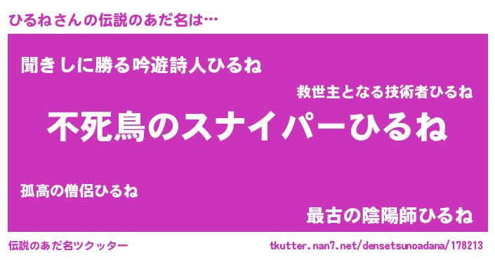 | ヒーロー風カッコイイあだ名 | 『スーパーヒルネ』『ウルトラ戦士ヒルネ』 |