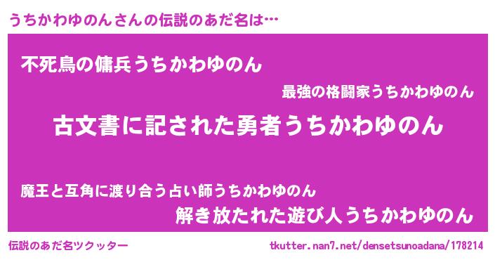 | ヒーロー風カッコイイあだ名 | 『ネオウチカワユノン』『銀牙騎士ウチ』 |