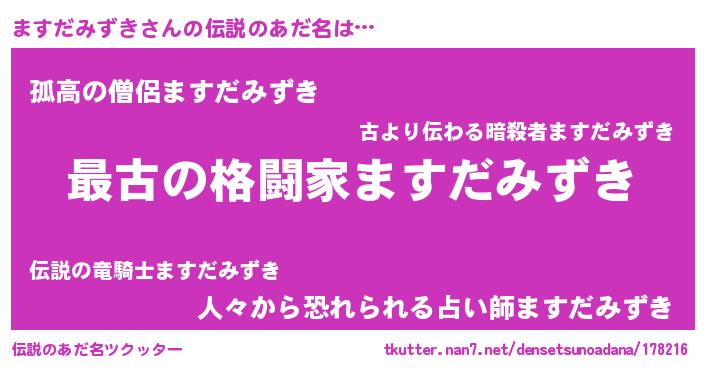 | 意味不明あだ名 | 『住所不定無職ますだみずき(8歳)』 |