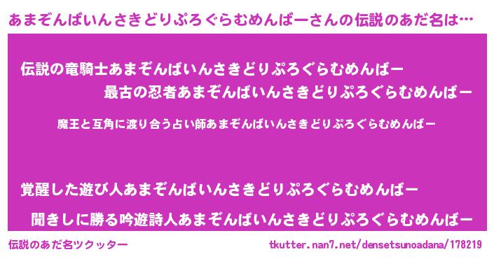 | 意味不明あだ名 | 『住所不定無職あまぞんばいんさきどりぷろぐらむめんばー(41歳)』 |