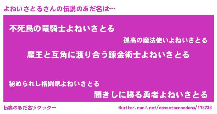 | 意味不明あだ名 | 『住所不定無職よねいさとる(79歳)』 |