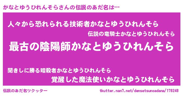 | 意味不明あだ名 | 『かなとゆうひれんそらフォーエバー』 |