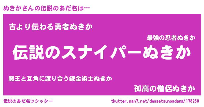 | ヒーロー風カッコイイあだ名 | 『スーパーヌキカ』『サイバー戦士ヌキカ』 |
