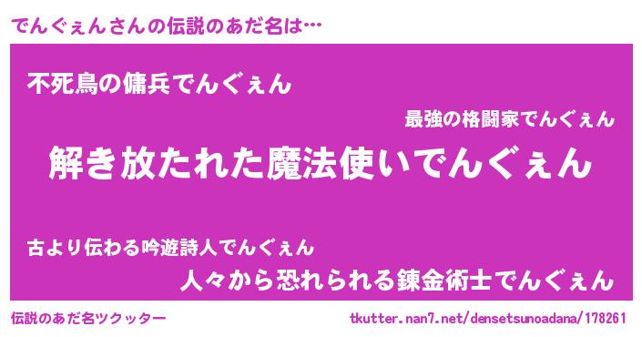 | ヒーロー風カッコイイあだ名 | 『幻影騎士デン』『スーパーデングェン』 |