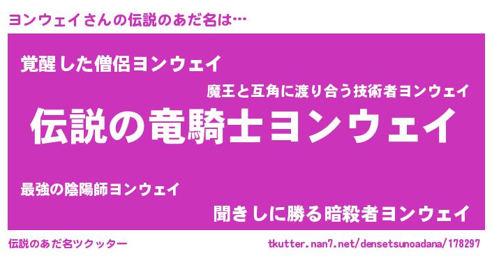 | 男性向けラノベタイトル風あだ名 | 『ヨンウェイの憂鬱』 |
